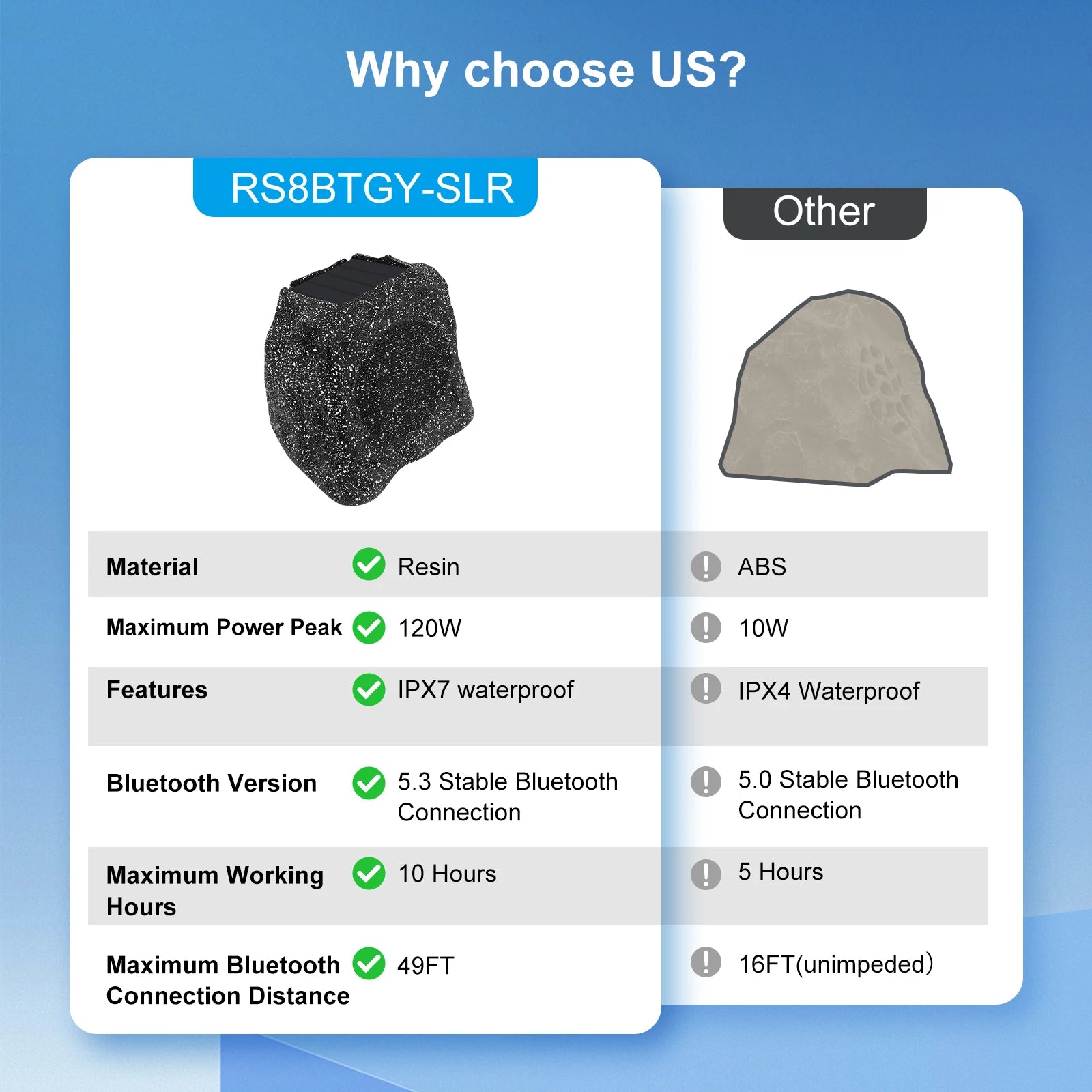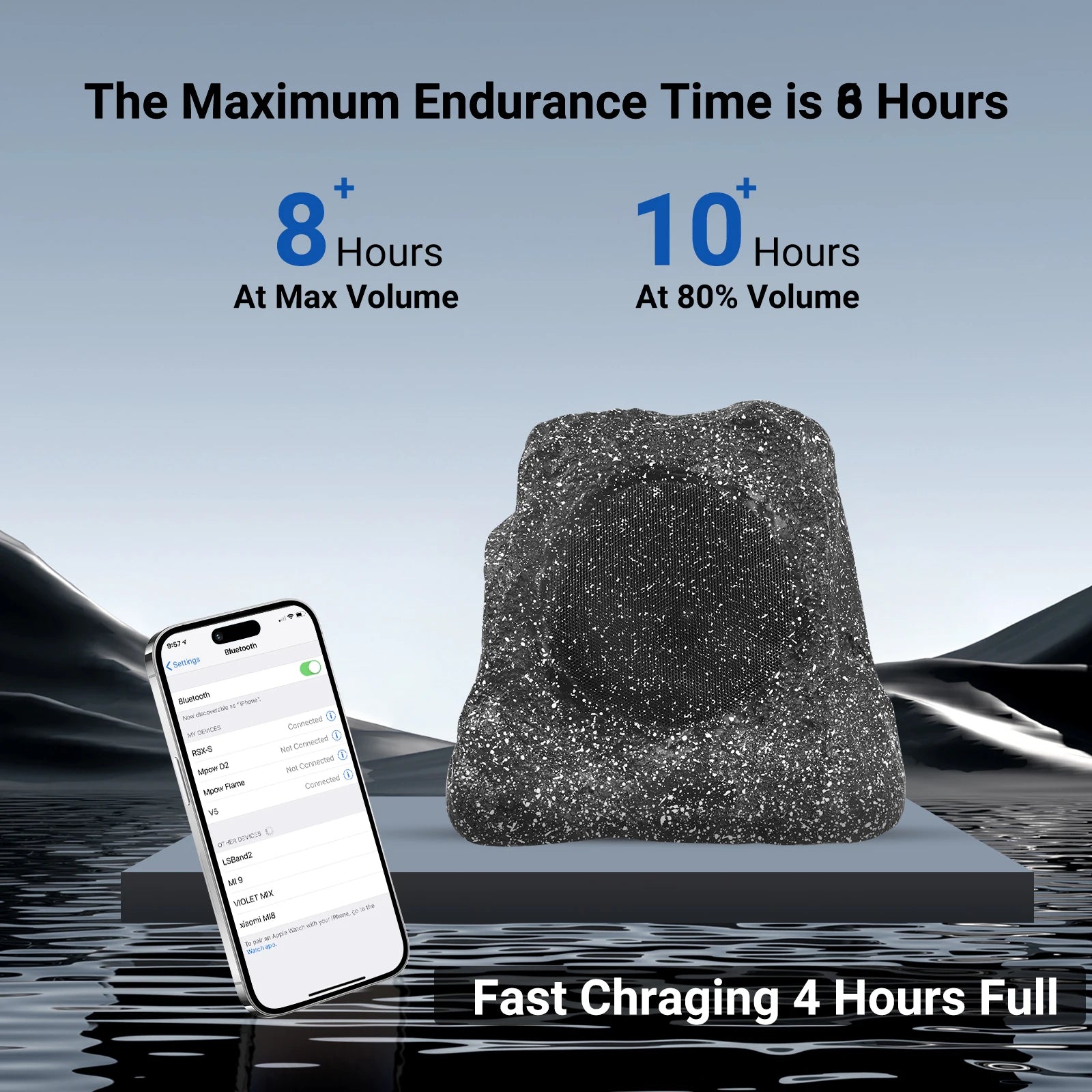 Herdio 8" Outdoor Bluetooth Rock Speakers, Waterproof IPX7, Solar-Powered, 240W, TWS, Rechargeable Battery